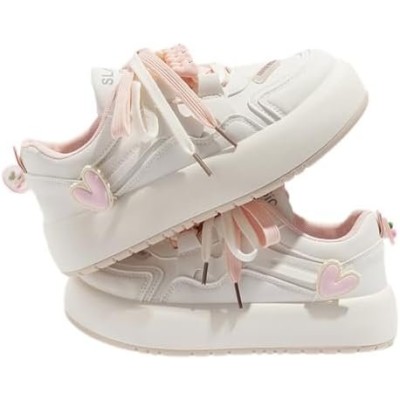 Y2K Cute Shoes Walking Sneakers for Women Chunky Pink Contrast Rabbit Flower Cherry Accents US 4-8