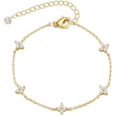 Bracelets for Women 14K Gold Silver Plated Ring Bracelet Hand Chain Dainty Evil Eye Heart Clover Daisy Cubic Zirconia Stackable Link Chain Hypoallergenic Body Jewelry Cute Trendy Gifts