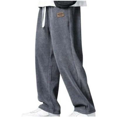 Men's Baggy Pants Tie Front Drawstring Waist Corduroy Pants Casual Loose Straight Leg Pants Trousers