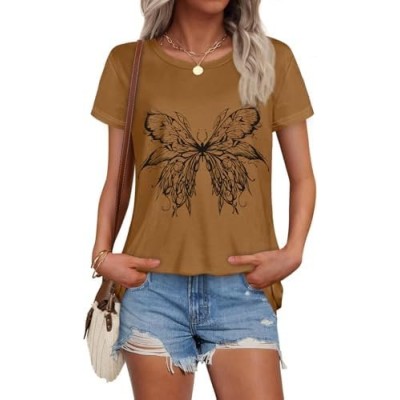 T Shirts for Women Summer Short Sleeve Crewneck Casual Cute Graphic Basic Tees Tops