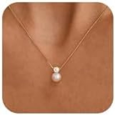 Pearl Necklaces for Women, Dainty Gold Necklace 14K Gold Plated Charm CZ Pearl Pendant Necklace Simple Gold Pearl Choker Necklaces for Women Trendy Wedding Womens Jewelry