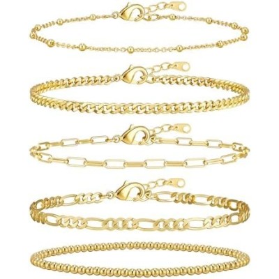 adoyi Gold Bracelets for Women, 14K Gold Plated Stackable Bracelet Stack Set Adjustable Charm Paperclip Chain Cuban Link Layered Waterproof Jewelry Sets Gifts for Womens 6.0/6.8/7.2"